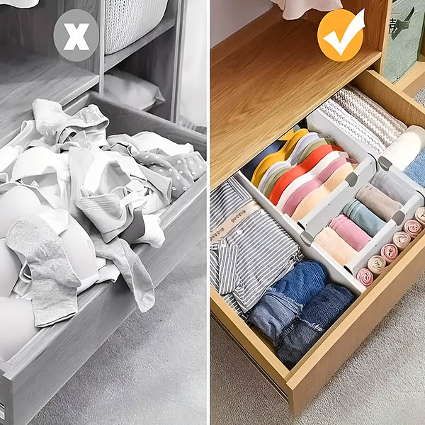Είτε πρόκειται για μαχαιροπήρουνα κουζίνας, είδη μπάνιου ή κάλτσες στο υπνοδωμάτιο, αυτά τα διαχωριστικά ρυθμίζονται από 28 cm έως 45 cm ώστε να ταιριάζουν στα περισσότερα συρτάρια. Μπορείτε να προσαρμόσετε τον χώρο σας ακριβώς όπως τον χρειάζεστε.