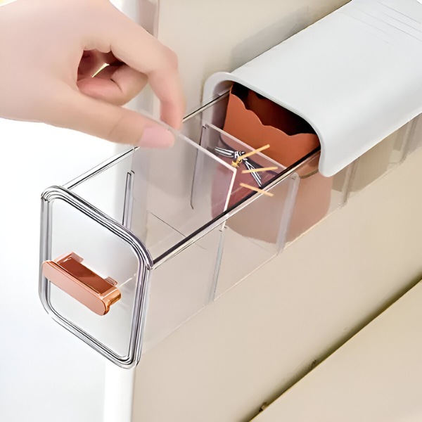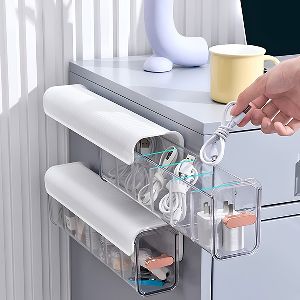 Κουραστήκατε να χάνετε στυλό, φορτιστές ή προμήθειες γραφείου; Η αυτοκόλλητη βάση του ORGABIN διευκολύνει την τοποθέτησή του κάτω από γραφεία ή τραπέζια για αποτελεσματική χρήση του χώρου. Το συμπαγές μέγεθος διασφαλίζει ότι όλα τα μικρά είδη πρώτης ανάγκης σας παραμένουν οργανωμένα και εύκολο να τα βρείτε.