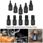Το σετ εξολκέων μπουλονιών 10 τεμαχίων προσφέρει μια ολοκληρωμένη γκάμα μεγεθών, εξασφαλίζοντας ότι έχετε το κατάλληλο εργαλείο για κάθε εργασία εξαγωγής.
