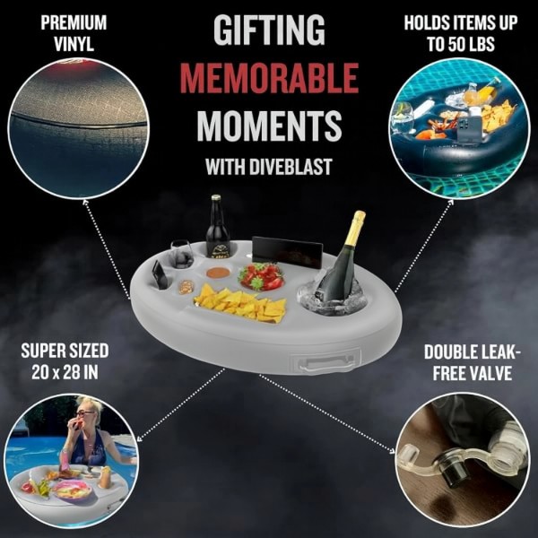 Κάντε κάθε στιγμή πιο διασκεδαστική και αξέχαστη με αυτό το φουσκωτό δίσκο, τον απόλυτο σύντροφο δίπλα στην πισίνα για φαγητό και ποτά.