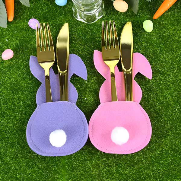 Κάντε τα πασχαλινά γεύματα ξεχωριστά με γοητευτικές θήκες μαχαιροπήρουνων σε σχήμα λαγού, προσφέροντας ζεστασιά και χαρά στο τραπέζι σας.