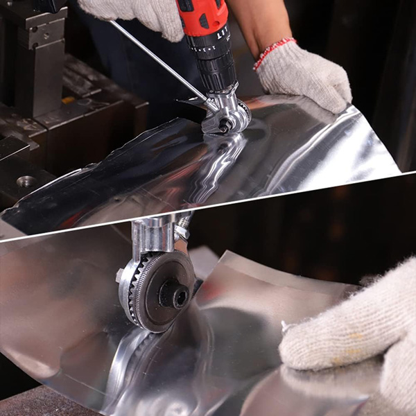 Ικανό να κόβει διάφορα υλικά έως 1mm πάχος, συμπεριλαμβανομένου ανοξείδωτου χάλυβα (0.5mm), σιδήρου (0.7mm), χαλκού, αλουμινίου, μεταλλικού πλέγματος, PVC και άλλων, αυτό το προσάρτημα προσφέρει απαράμιλλη ευελιξία για πλήθος εφαρμογών.