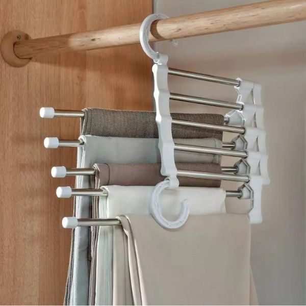 Μην περιμένετε άλλο! Βελτιώστε την οργάνωση της ντουλάπας σας και εξοικονομήστε χώρο με αυτή την εξαιρετική κρεμάστρα παντελονιών 5 επιπέδων.