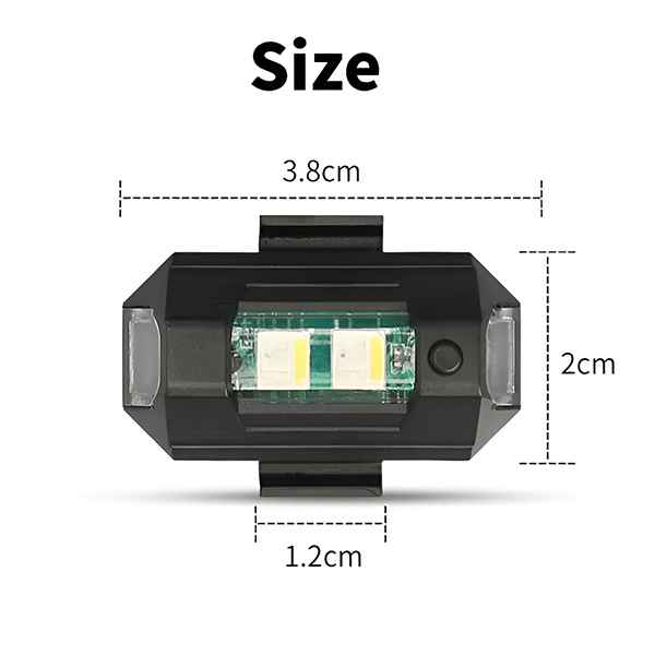 🚨 Ορατά από 100+ μέτρα – 7 χρώματα RGB και 3 λειτουργίες φωτισμού (γρήγορο strobe, αργό strobe, σταθερό) που αλλάζουν με το πάτημα ενός κουμπιού.