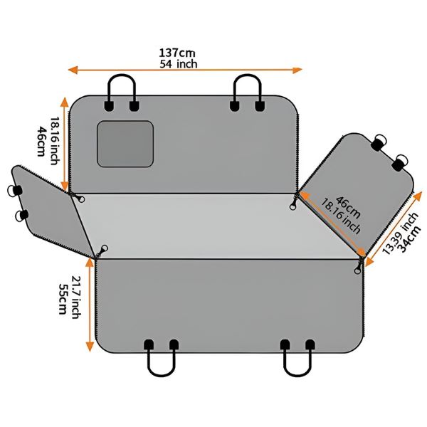 Ειδικά χαρακτηριστικά: Συμπτυσσόμενος σχεδιασμός, αδιάβροχο, άνοιγμα για ζώνες ασφαλείας, ανθεκτικό σε γρατζουνιές, προστασία πόρτας